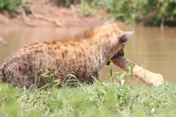 Un peu plus tard, sur une piste cette fois, on assiste au festin des hyènes et des vautours.