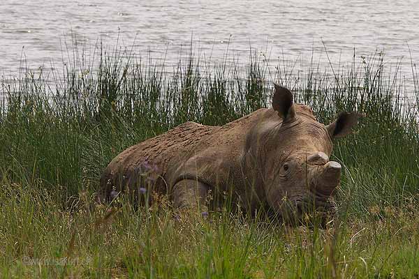 Depuis ce point, j'observe un bon moment ce rhino noir qui prend son bain du soir, ainsi que