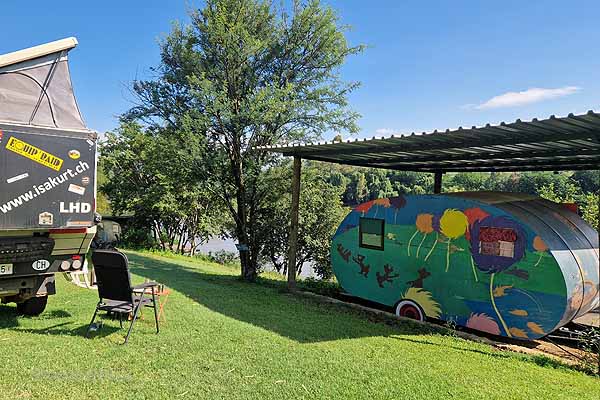 camping du parc Hlane en Eswatini. Ils sont en Afrique du Sud depuis