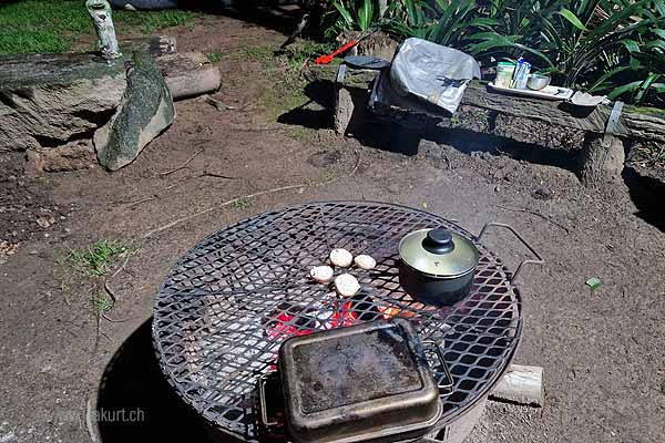 En fin d'après-midi, je suis de retour au camping, où je fais un feu de bois et cuis mon dernier pain de l'année.