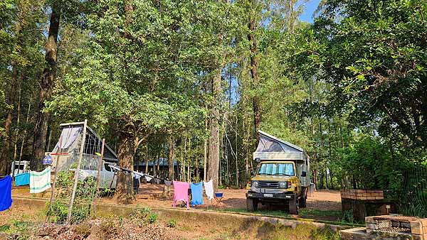 camping du parc Hlane en Eswatini. Ils sont en Afrique du Sud depuis