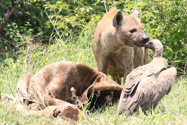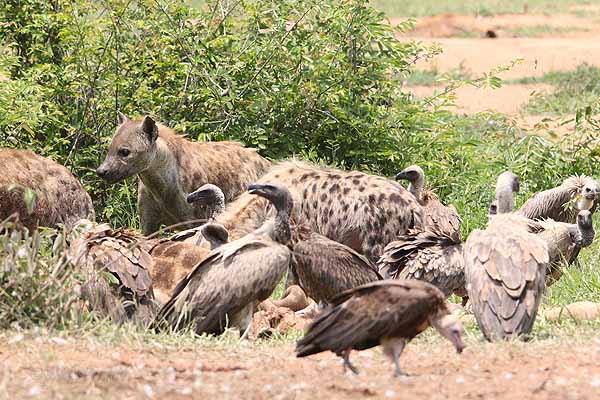 Un peu plus tard, sur une piste cette fois, on assiste au festin des hyènes et des vautours.