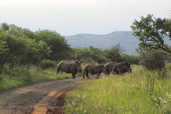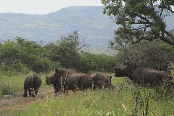 différents oiseaux, lorsque j'aperçois le groupe de neuf rhinos blancs