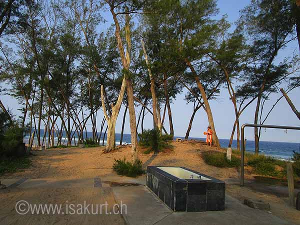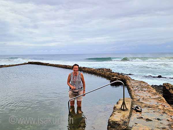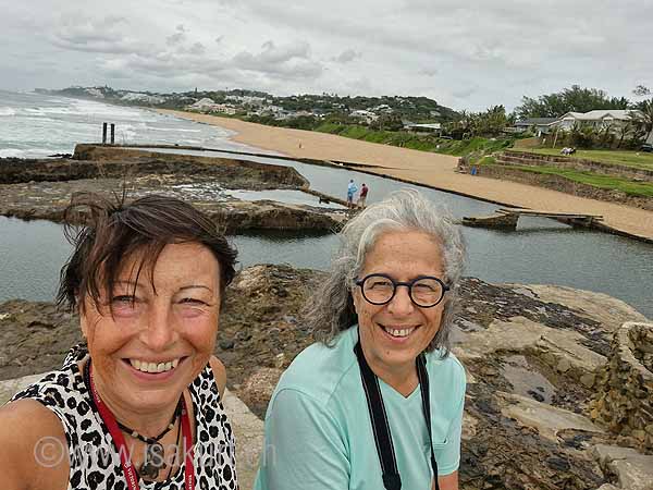 Pour notre première étape, j'emmène Evelyne au bord de la mer, pas très loin de l'aéroport de Durban, à côté de Balito, à Salt Rock camp. Malheureusement, nous ne profitons pas des belles piscines d'eau de mer, il ne fait pas assez chaud pour nous.