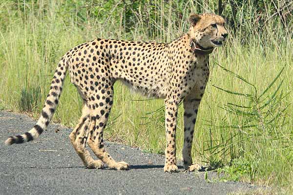 Quelle chance ! Après quelques kilomètres seulement, nous apercevons ce guépard au bord de la route !