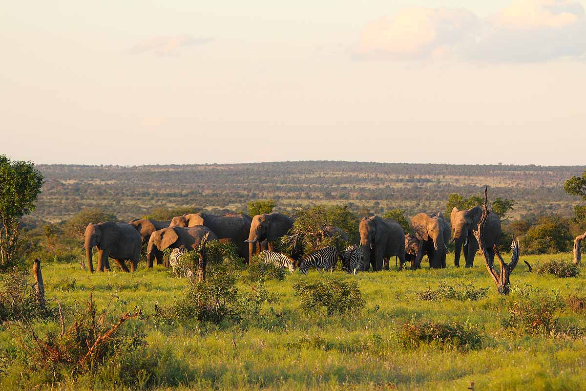 derniers rayons du soleil qui lèchent les dos des éléphants et des