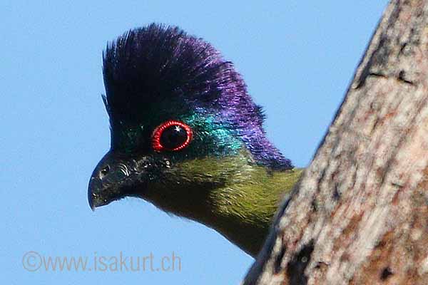 l'entendais, sans jamais réussir à l'apercevoir. Le magnifique Touraco à huppe splendide - (DE-Glanzhaubenturako)